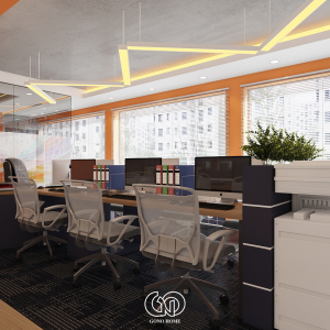 Mẫu thiết kế văn phòng này được Gono Home triển khai theo phong cách hiện đại, hướng đến sự trẻ trung, sáng tạo và tối ưu hiệu suất làm việc. Không gian được bố trí khoa học với sự kết hợp hài hòa giữa khu làm việc chung và phòng họp riêng biệt.