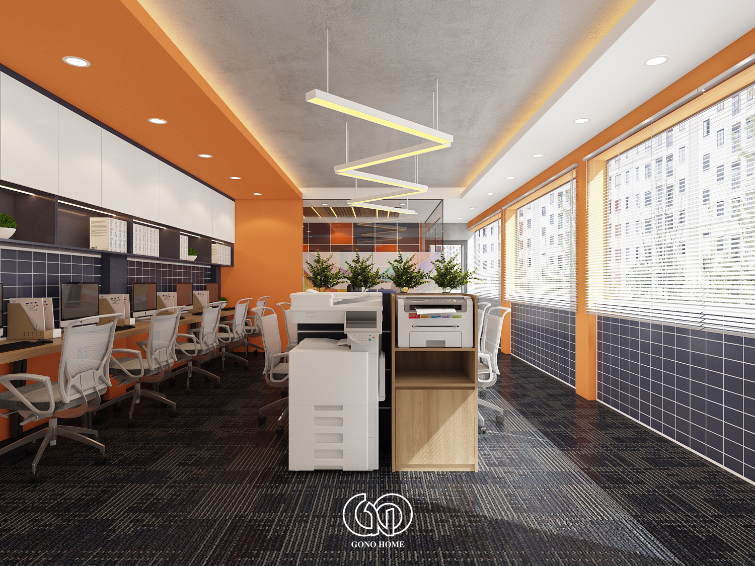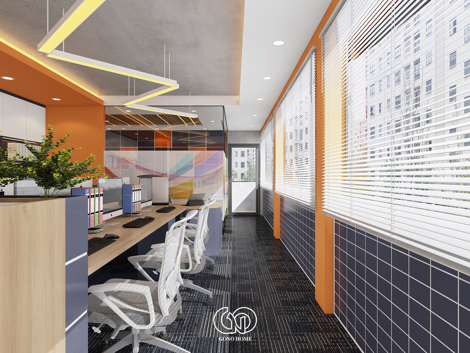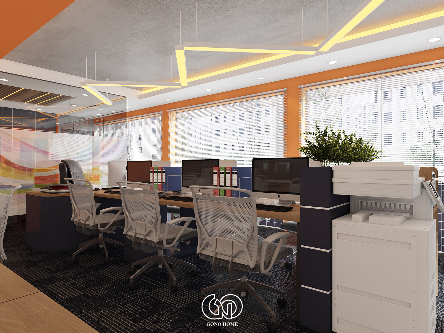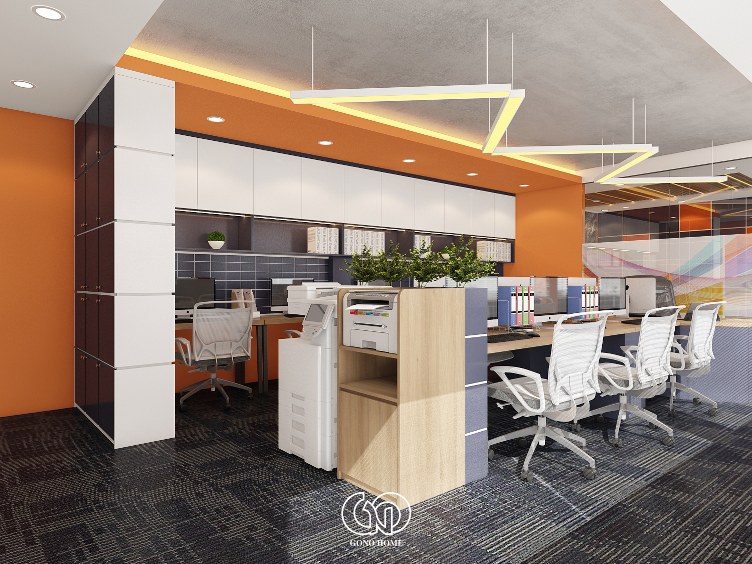 Nội Thất Văn Phòng Hiện Đại Tone Cam Năng Động